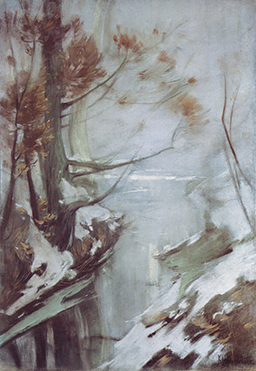 Das Motiv des Wentorfgrabens in Geltow malte Hagemeister zu verschiedenen Jahreszeiten – auch im Schnee mit dicker Jacke und Eiszapfen am Bart. |