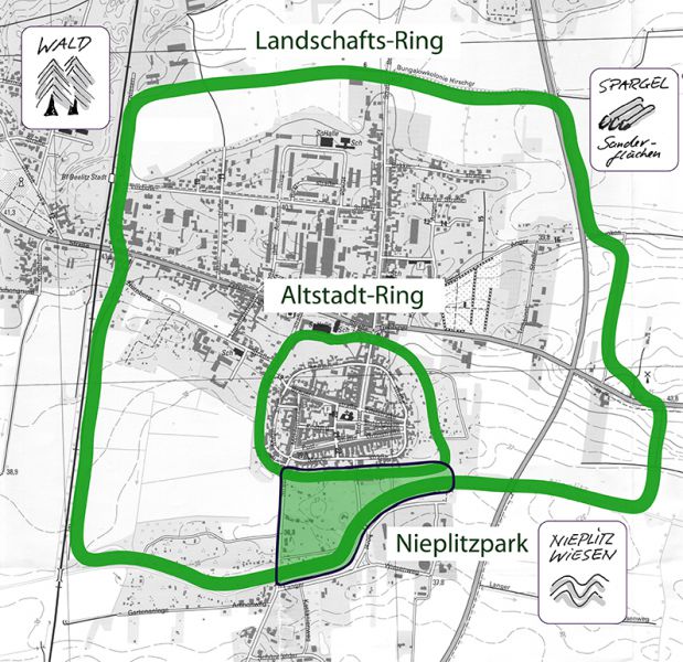 Im neuen Freiraumkonzept „Grüne Ringe“ werden der Altstadt-Ring und der Landschafts-Ring durch den geplanten Nieplitzpark verbunden. |