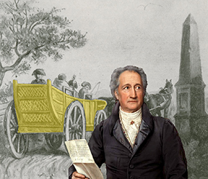 Johann Wolfgang von Goethe reiste mit der Postkutsche durch Beelitz. Die historische Postroute mit Meilensteinen wird gestalterisch modern interpretiert.
