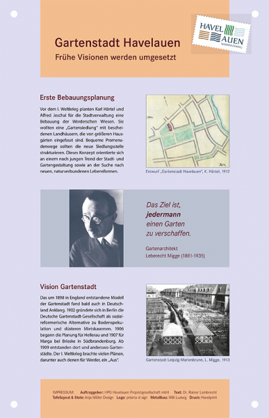 Tafel zum Thema „Gartenstadt Havelauen - Frühe Visionen werden umgesetzt“ |